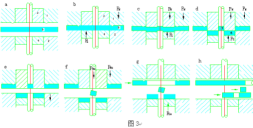 外金屬的橫向流動。同時反壓力PG又在剪切線內由頂件器(4)將材料壓緊在凸模上,并在壓緊狀